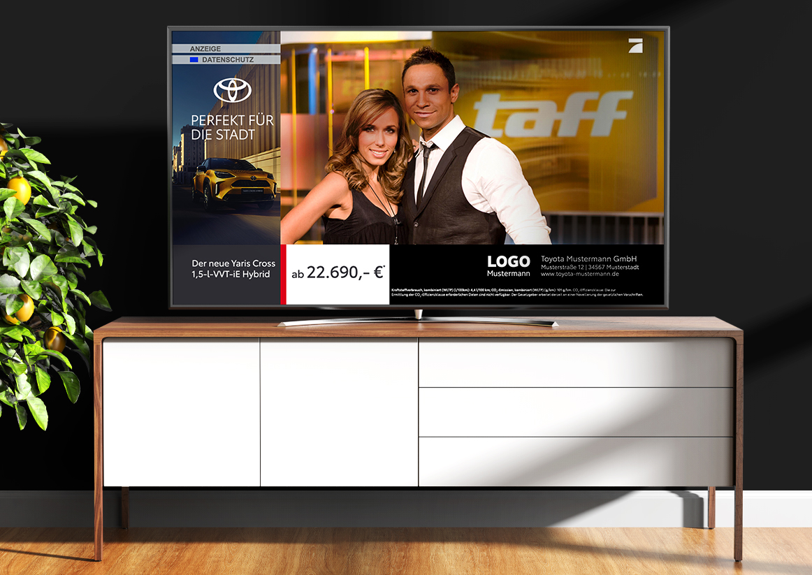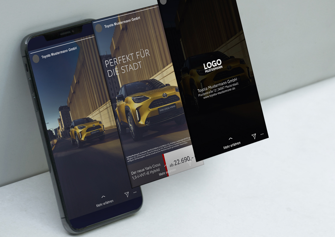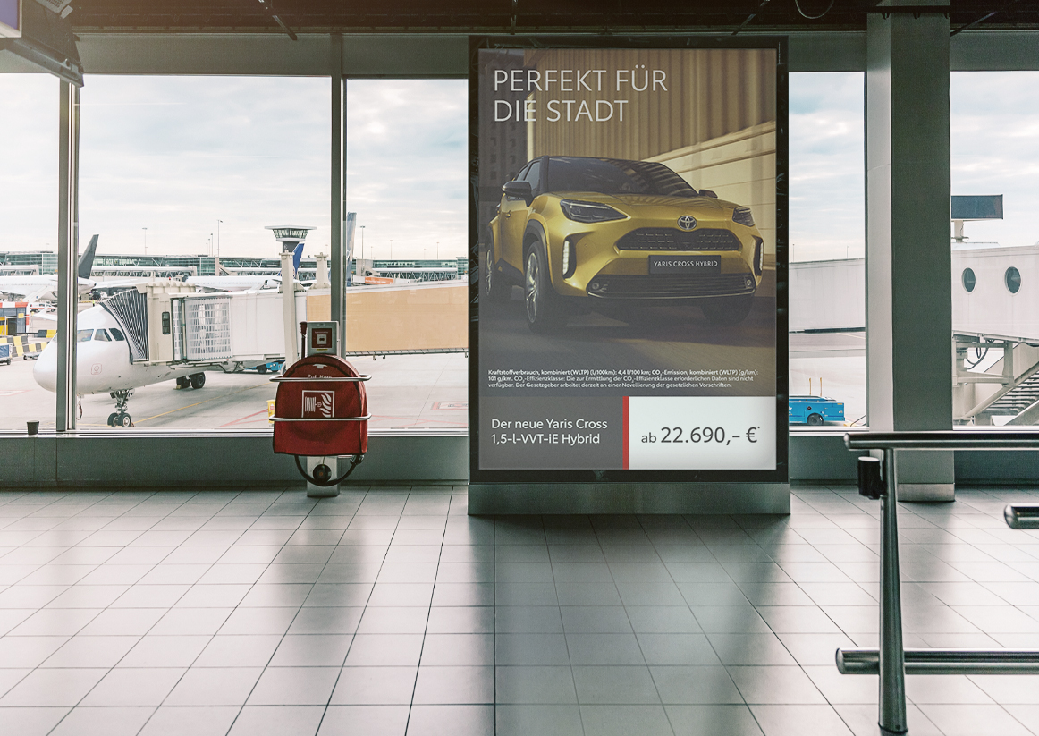 Der neue Toyota Yaris Cross Hybrid – Digitale Möglichkeiten für Ihr Handelsmarketing in Q4 2021 Zielgruppengenaue Ausspielung nach Ihren Wünschen in Ihrem Gebiet. Social Paid – Yaris Cross Hybrid PA-Banner – Yaris Cross Hybrid ATV – Yaris Cross Hybrid DOOH – Yaris Cross Hybrid